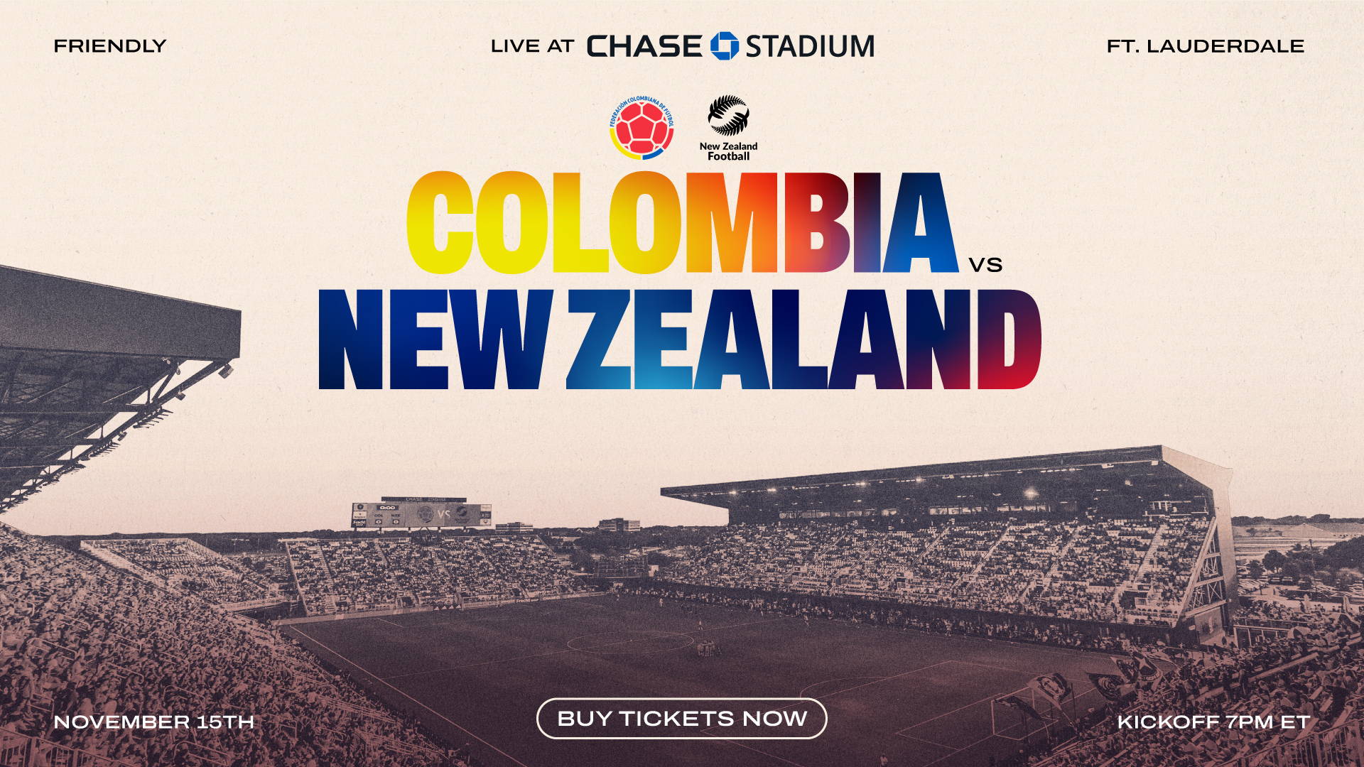 Chase Stadium continúa atrayendo emocionantes amistosos internacionales al sur de Florida, con la casa de Inter Miami CF lista para ser la sede de un partido entre Colombia y Nueva Zelanda. Durante la ventana internacional de la FIFA, el sábado 15 de noviembre a las 7 p.m. ET, Los Cafeteros y All Whites se enfrentarán por segunda ocasión en su historia, tras un encuentro en la fase de grupos de la Copa FIFA Confederaciones 2003 que terminó con victoria por 3-1 para el combinado sudamericano. La información sobre la transmisión del amistoso internacional se anunciará próximamente.